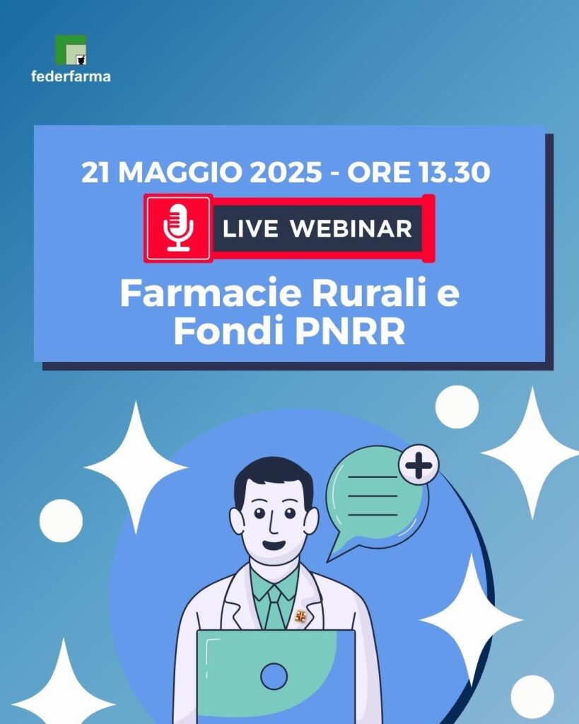 In relazione alla pubblicazione dell’Avviso pubblico 2025 per la concessione di risorse del PNRR per il consolidamento delle Farmacie rurali, Federfarma ha organizzato un webinar che si terrà il21/05/2025 dalle ore 13.30 alle ore 14.30, per illustrare ai farmacisti le modalità di richiesta dei fondi. Nel caso di dubbi nelle fasi di presentazione della domanda, è opportuno contattare […]